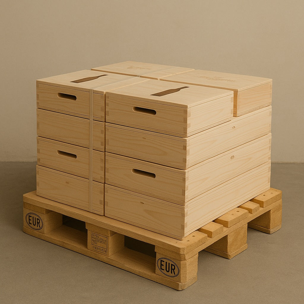 We ship wine safely on ¼, ½, or full Euro pallets, depending on your order. Every case remains in its original packaging — we never re-pack or re-label. This way, your wine always arrives in perfect condition, exactly as it left our cellar, preserving its authenticity and integrity.